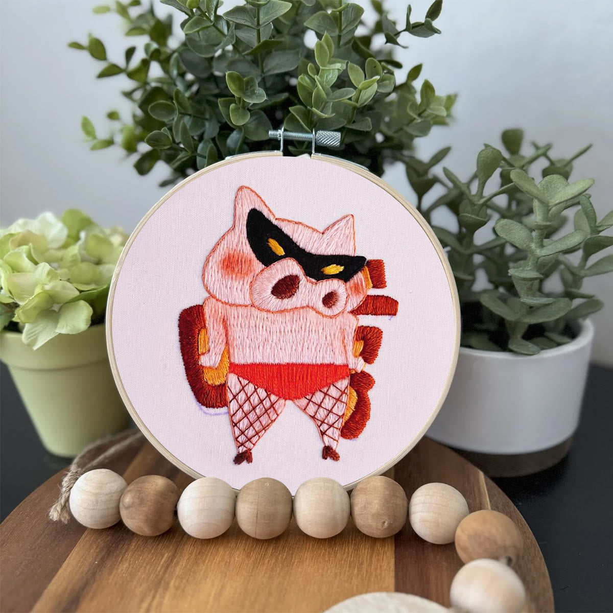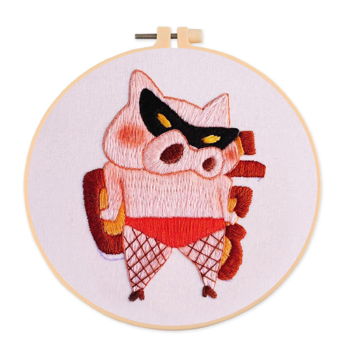 Rubbyoo Embroidery Kit- Funny Pig| Diy Kit For Starter Hand Stitch