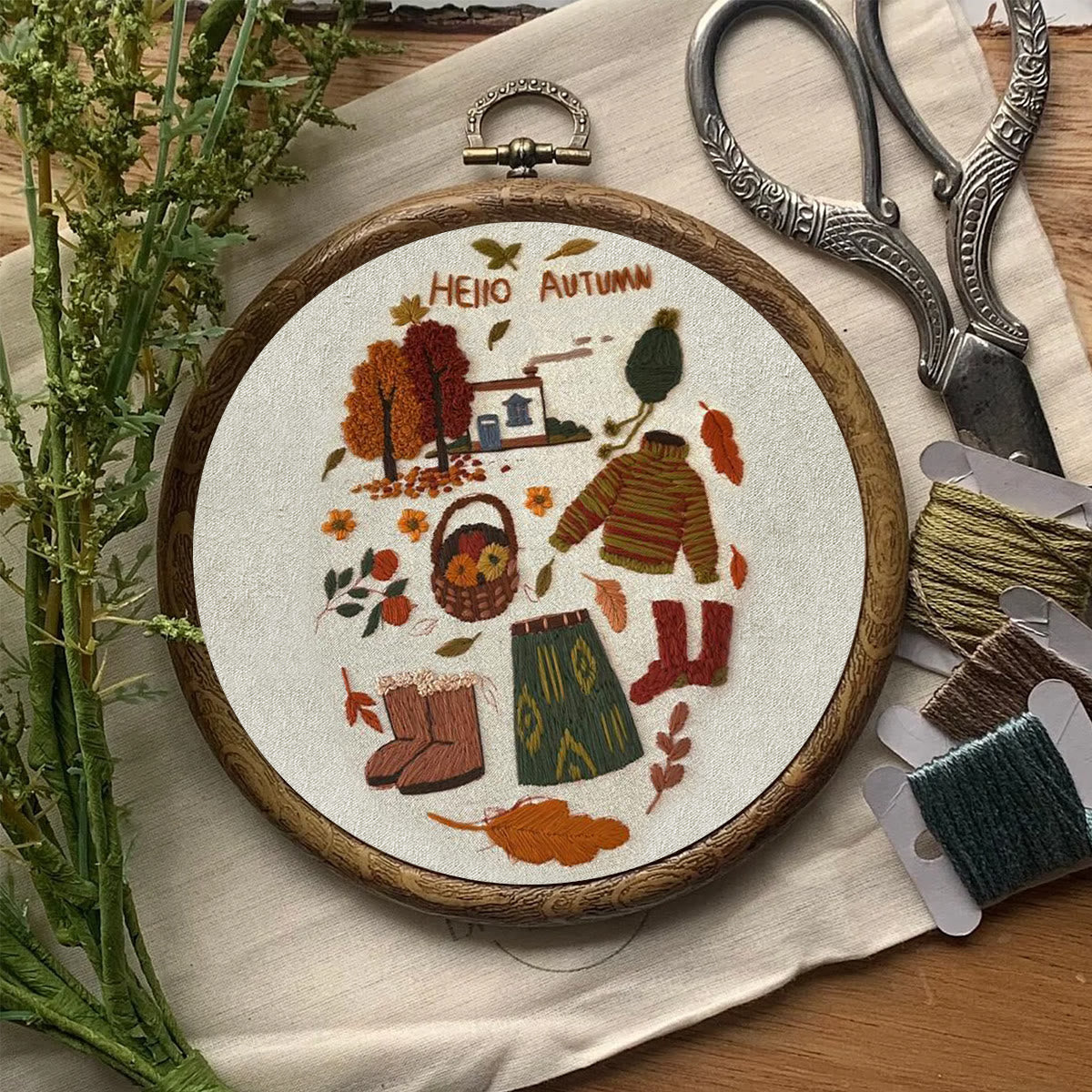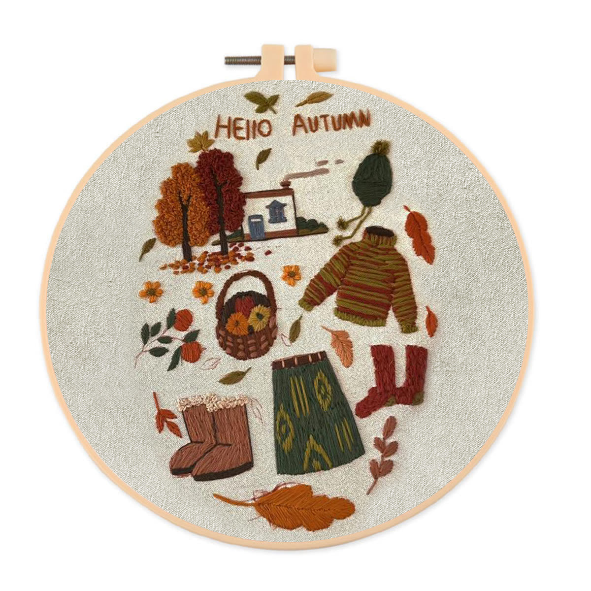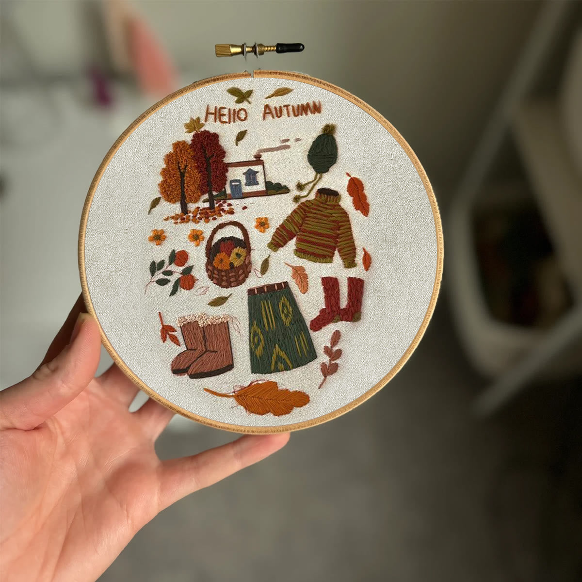 Rubbyoo Embroidery Kit- Hello Autumn | Diy Kit For Beginners Cozy Crafts