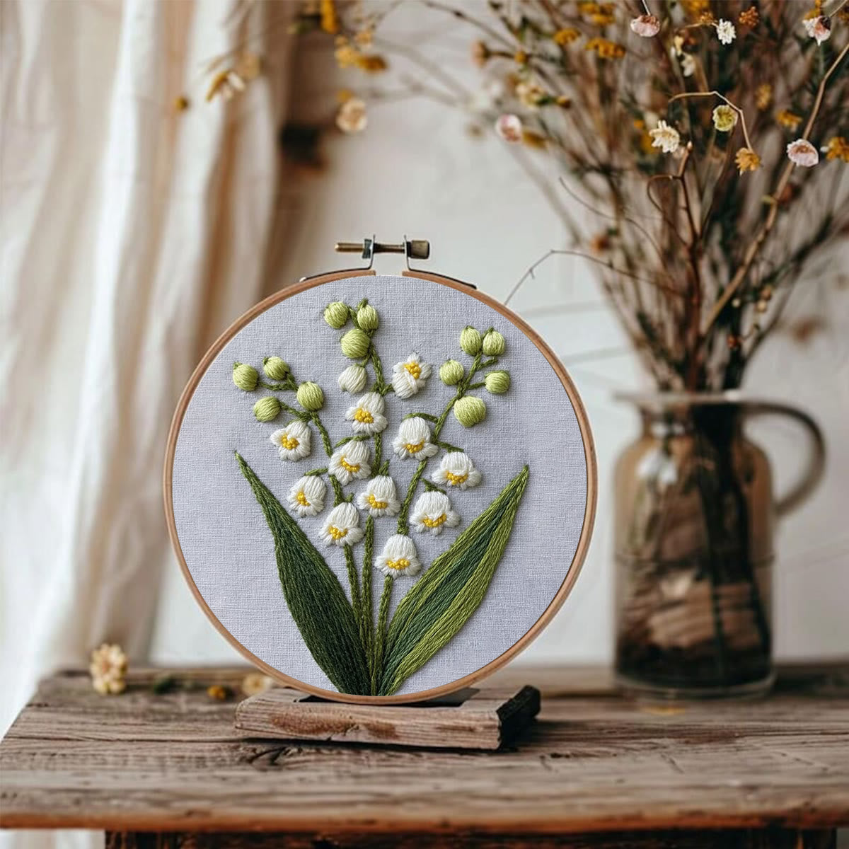 Rubbyoo Embroidery Kit - Lily Of The Valley | Flower Needle Craft Kits