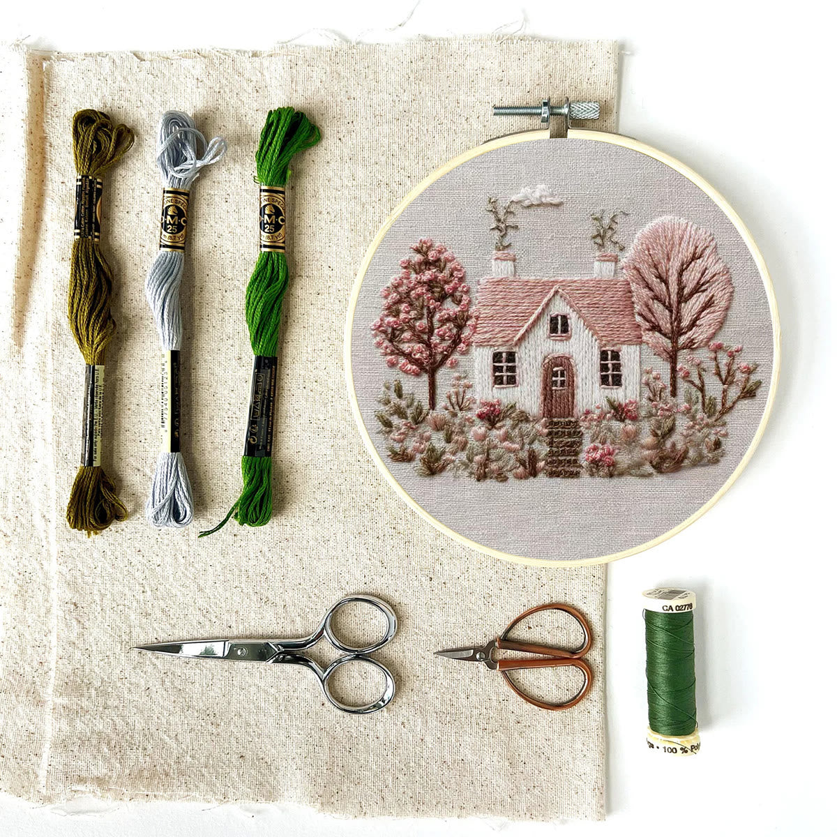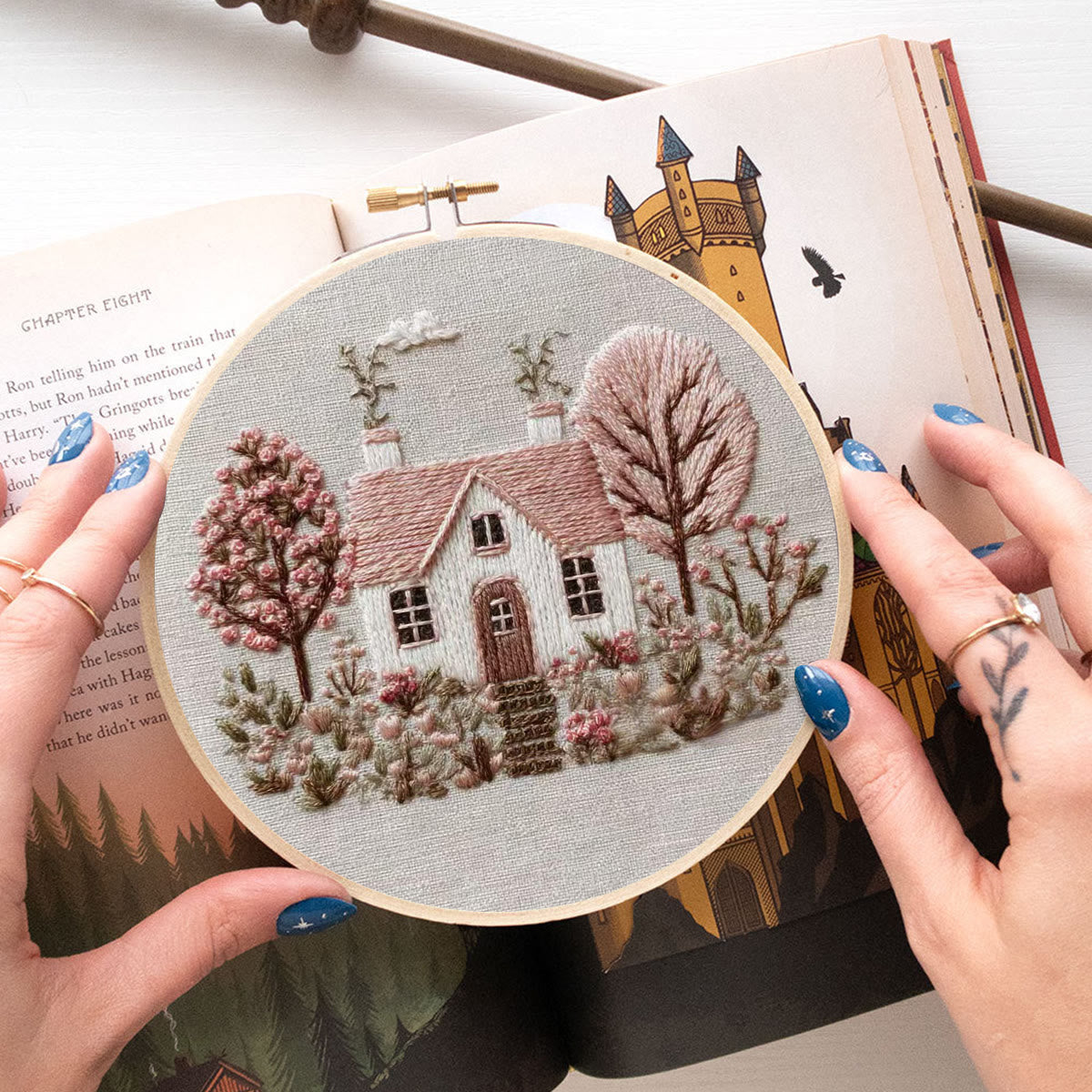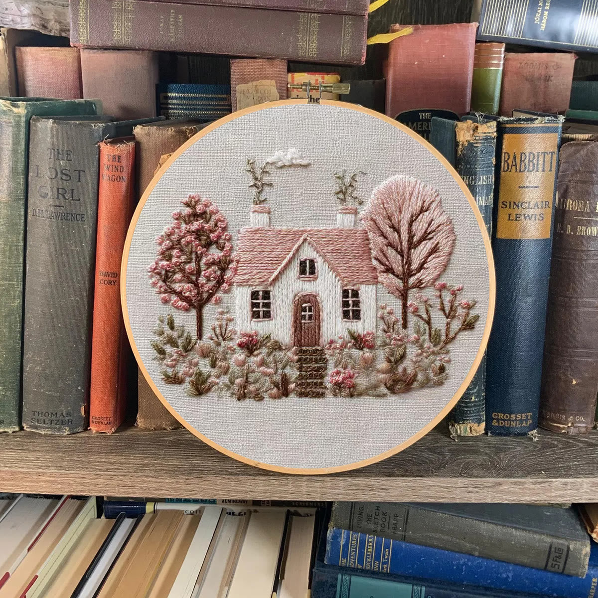 Rubbyoo Embroidery Kit - Pastel Cottage Scene | Cozy Wall Ornament | Newbie-suitable Handmade