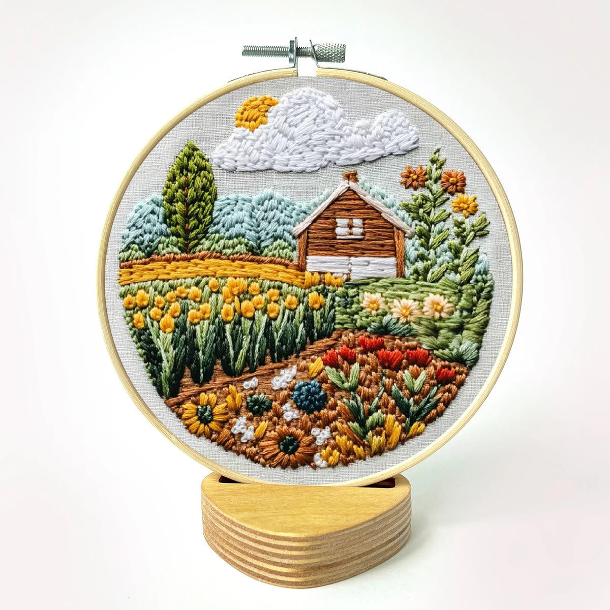 Rubbyoo Embroidery Kit - Pastoral Scenery | Diy Landscape Craft | Easy Art Hoop Kit