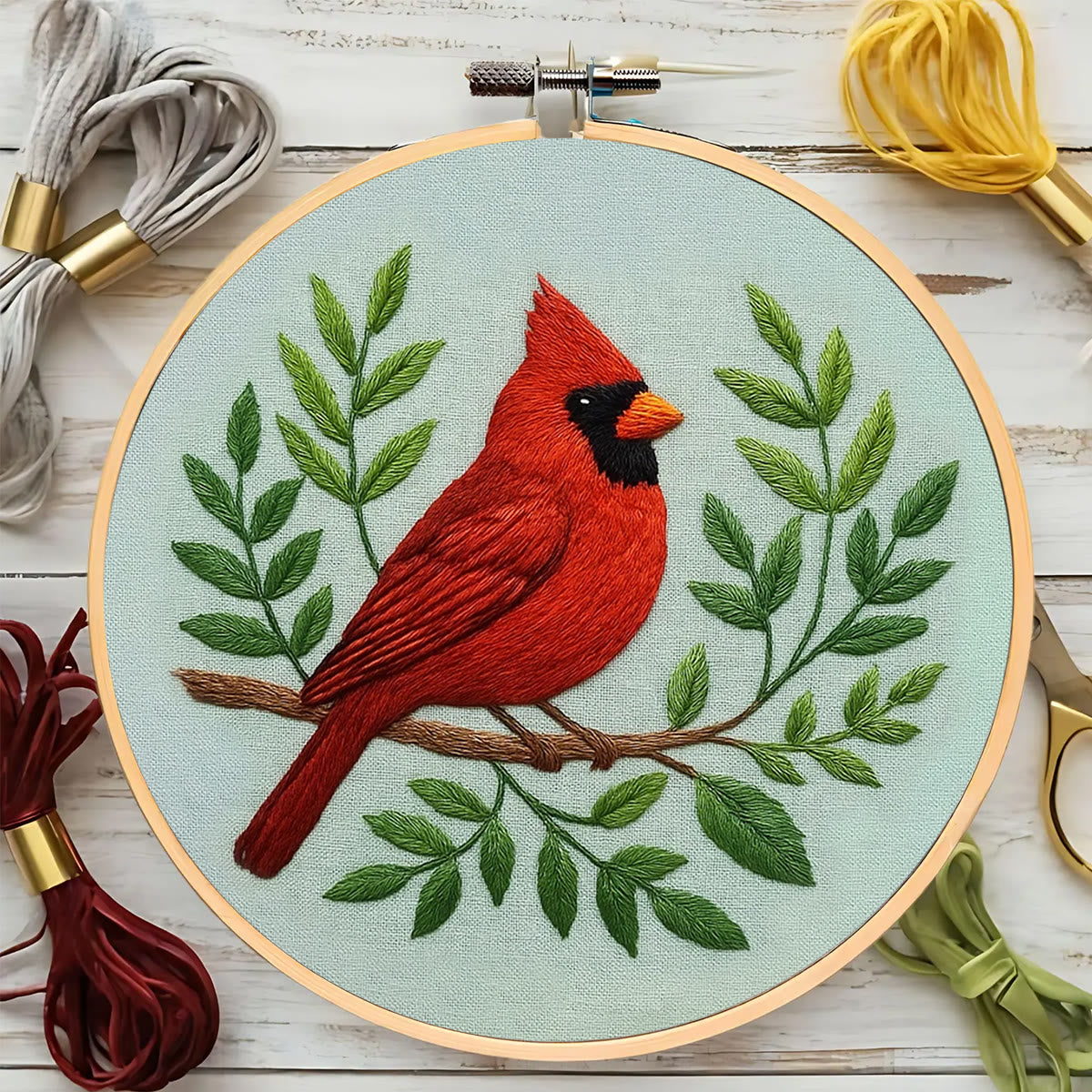Rubbyoo Embroidery Kit - Red Cardinals With Branches | Needlepoint Wall Art