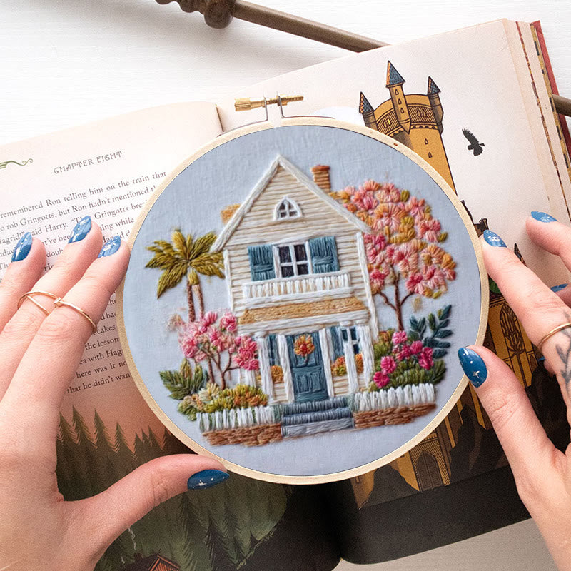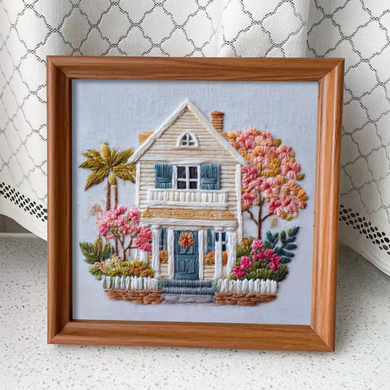 Rubbyoo Embroidery Kit - Vintage Cottage | Handmade Landscape Needlework | Diy Home Ornament
