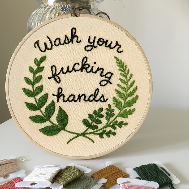 Rubbyoo Embroidery Kit -"Wash Your Fucking Hands" | Modern Needlework Pattern for Adults