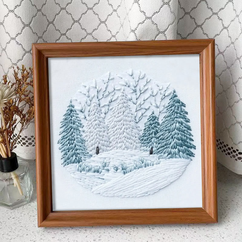 Rubbyoo Embroidery Kit - Winter Snowy Pine Forest | Cozy Home Accent | Hand Embroidery