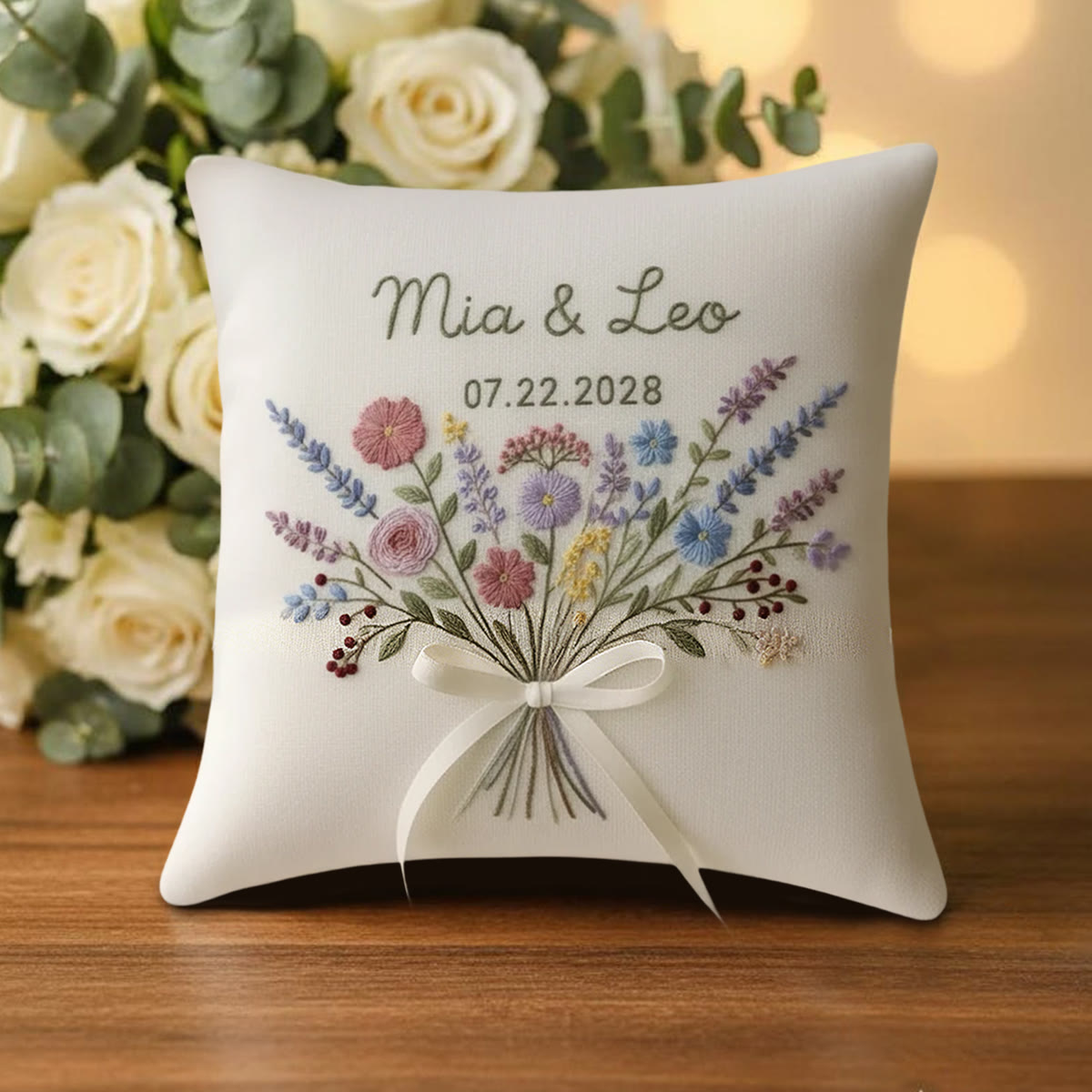 Rubbyoo Personalized Ring Bearer Pillow Embroidery Kit - Colorful Floral Bouquet | Beginner-friendly Handcraft | Elegant Gifting