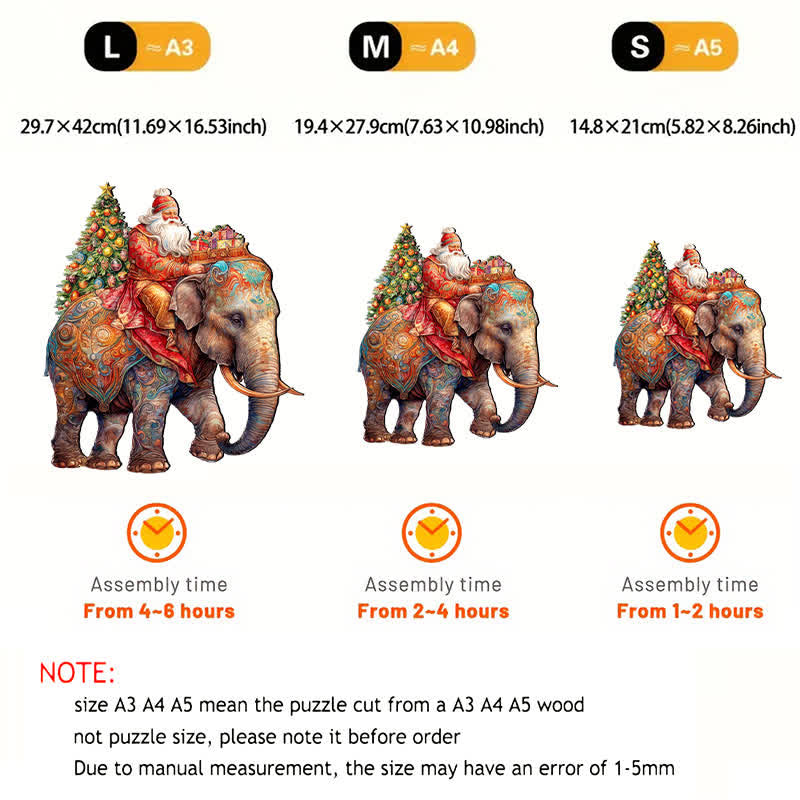 Rubbyoo Santa on Elephant - Wooden Jigsaw Puzzle