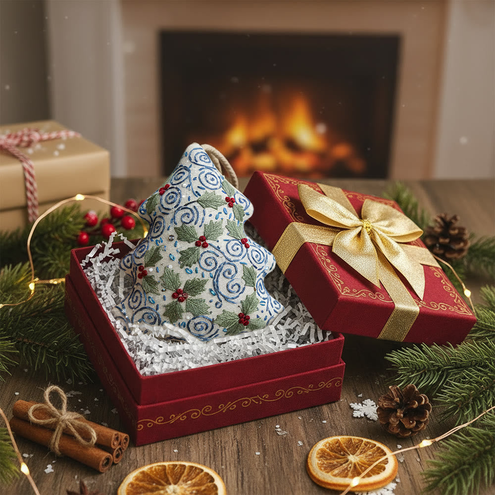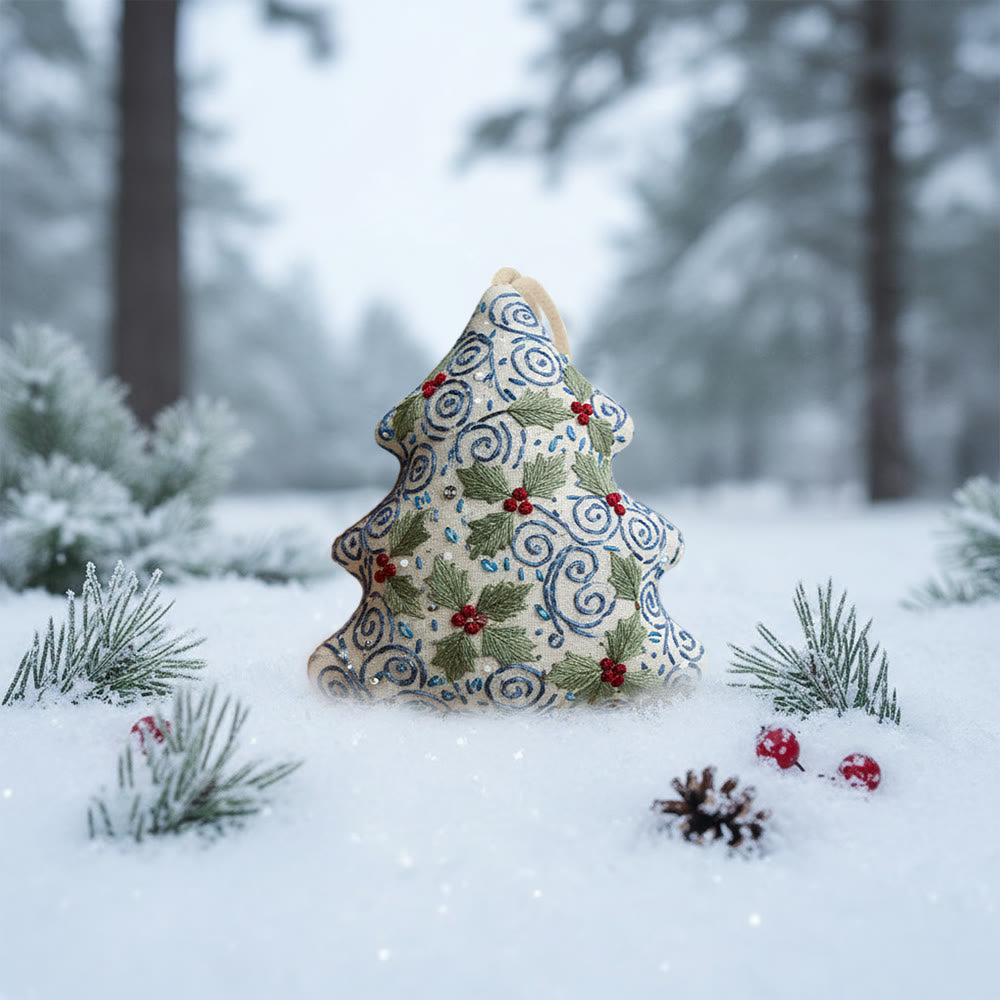 Rubbyoo Tree-shaped Embroidery Kit - Swirling Holly | Easy Diy Craft For Beginners | Exquisite Hanging Embroidery